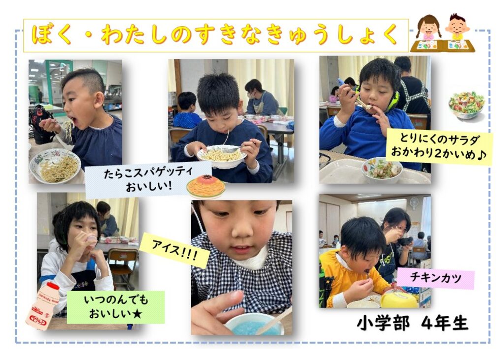 本校も参加しており、今年度は「おいしい給食~ぼくわたしの好きな給食~」と題して、本校の子供たちの好きな給食のメニューをランキングにして紹介したり子供たちの給食の時間の風景を写真にて紹介します。