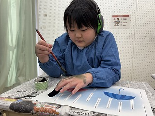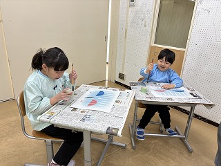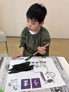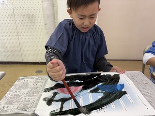 新年を迎え、今年初めての図工で「墨遊び」をしました。
