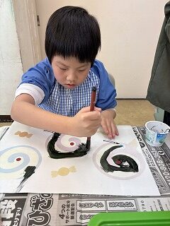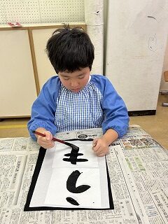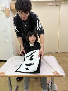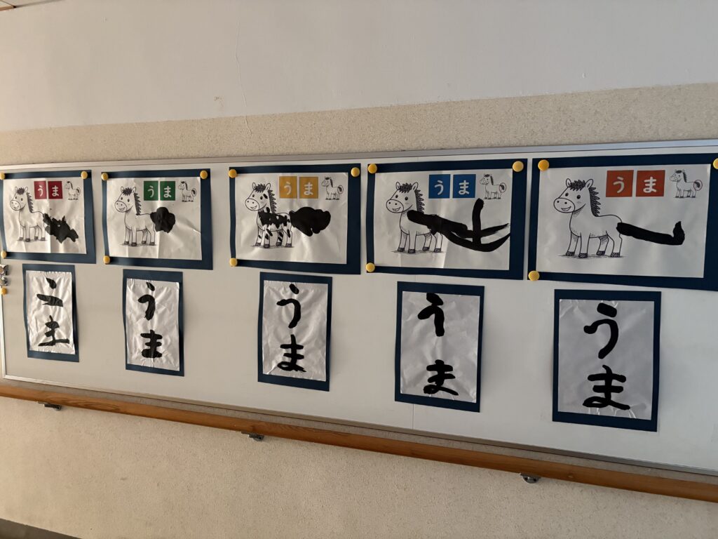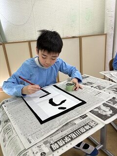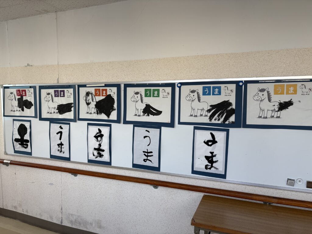 令和8年1月 3・4年生「今年の干支は“うま”!墨を使って線や文字を書きました!!」