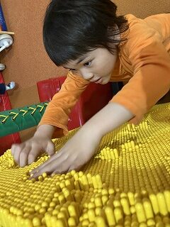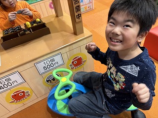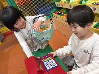 2月には校外学習へと行きました。わいわいパークで遊んだ後、自分の昼食を買いにスーパーへ行きました。わいわいパークでは、滑り台などの遊具で遊んだり、ごっこ遊びをしたりして楽しく過ごしました。色々な遊び方がある中で、自分の好きな遊びを見付けて繰り返し取り組む様子も見られました。スーパーでは、パンやおにぎりなど自分の好きなものを選び、レジでお金を支払うことができました。スクールバスで帰途につき、自分が買った昼食を教室で美味しく食べました。