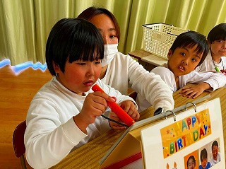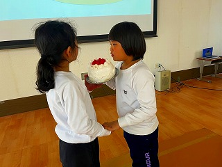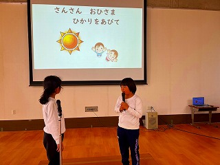 2月16日の学部集会の担当は2年生でした。冬休み開けから学部集会に向けて、少しずつ練習を始めました。司会や歌、うちわ渡し、スケジュールなどそれぞれ担当を決め、練習に臨みました。会場となる第Ⅱプレイルームでの初めての練習は、とてもスムーズで、すぐに学部集会を実施しても良いのでは、と思うほど上手に役割をこなしてくれていました。迎えた当日。あいにく体調不良者が相次ぎ、まさかの出席したのは2名。それでも、休んだ友達の役割を引き受け、精一杯やり遂げてくれました!当日お休みだった児童も、練習で積み上げてきたものをまた違う場面で発揮してくれることを願っています。