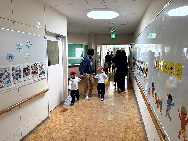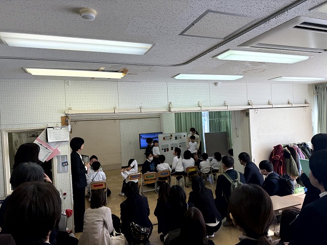 3つのグループに分かれても、1グループは24名になります。人数が多いため、教室でじっくりと授業を見学していただく形にするのはなかなか難しいのですが、それでも子供たちの様子をご覧になると、皆さん一様に表情がほころびます。