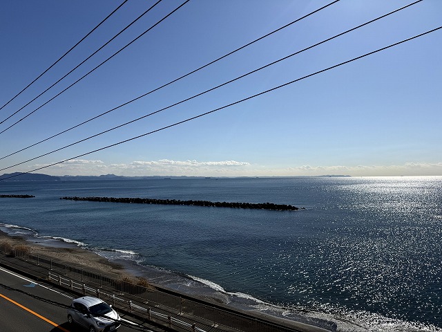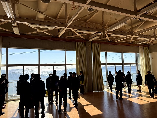 施設をご案内して回る中で、第2プレイルームからの景色には皆さんいつも驚かれます。この日は天気も良く、風も穏やかだったため、海がとても綺麗に見えました。