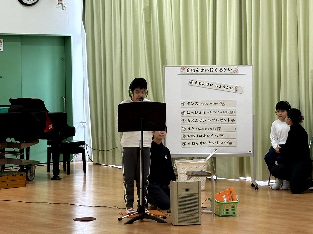 この会の司会は、毎年5年生が担当します。卒業生一人ひとりの“好きなもの”を紹介するのも5年生の大切な役割で、会を温かく盛り上げてくれます。